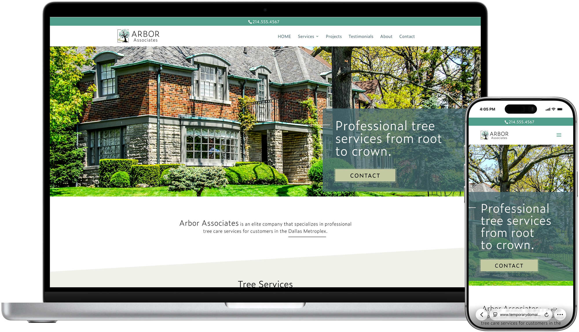 Brand identity and website design concept for an upscale/professional tree care company. Complete visual system including logo, brand guidelines, and custom web design.