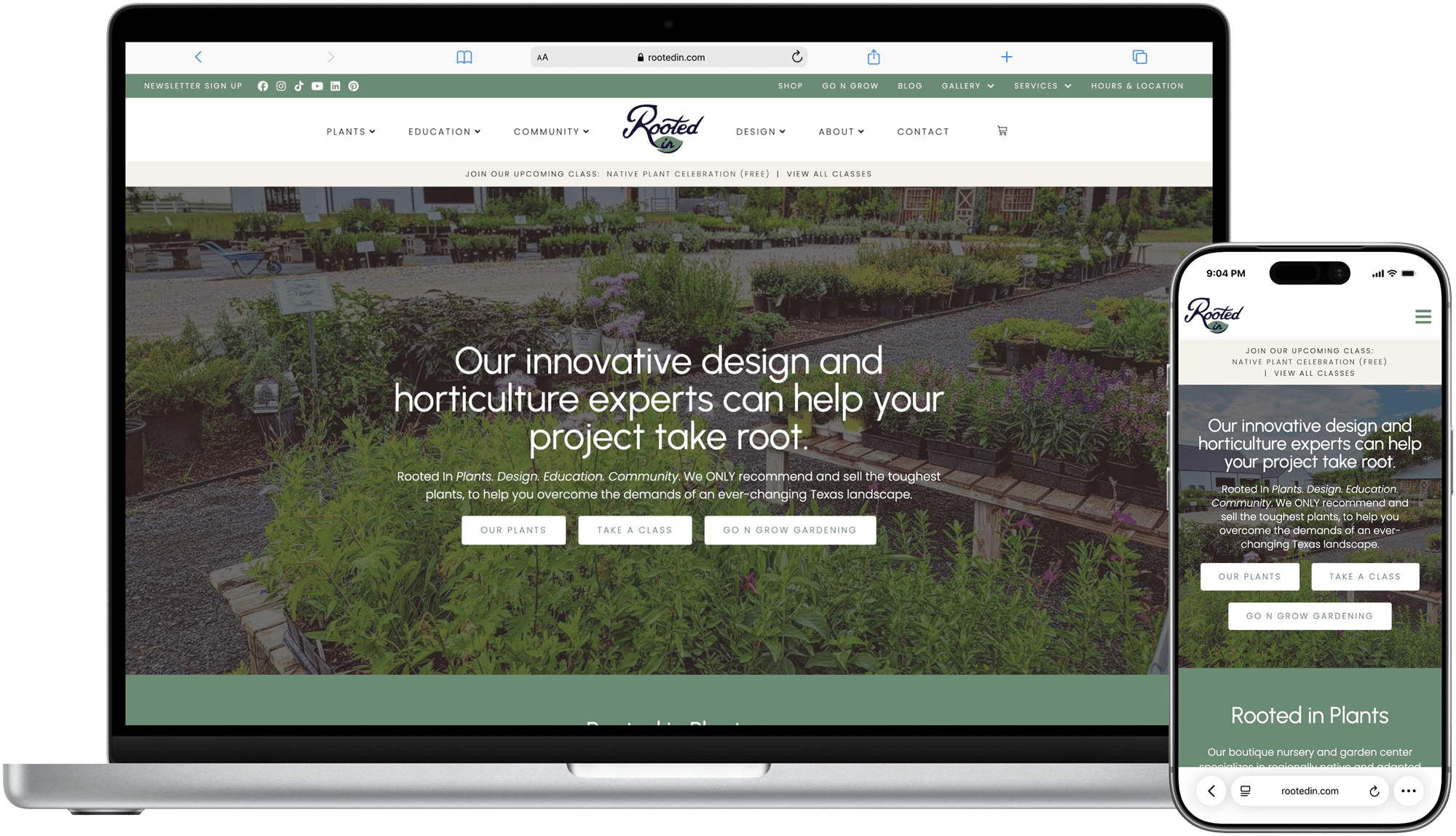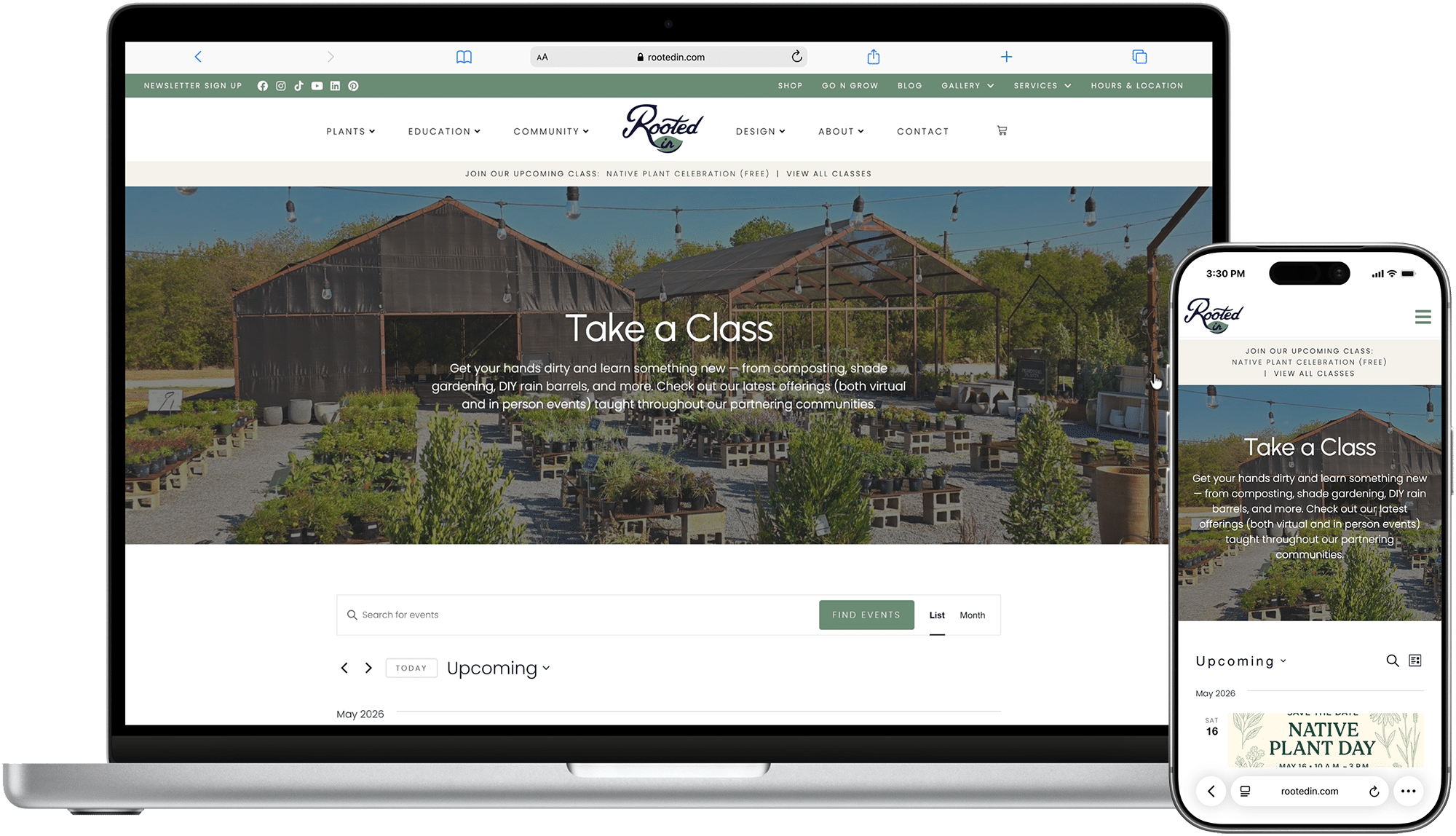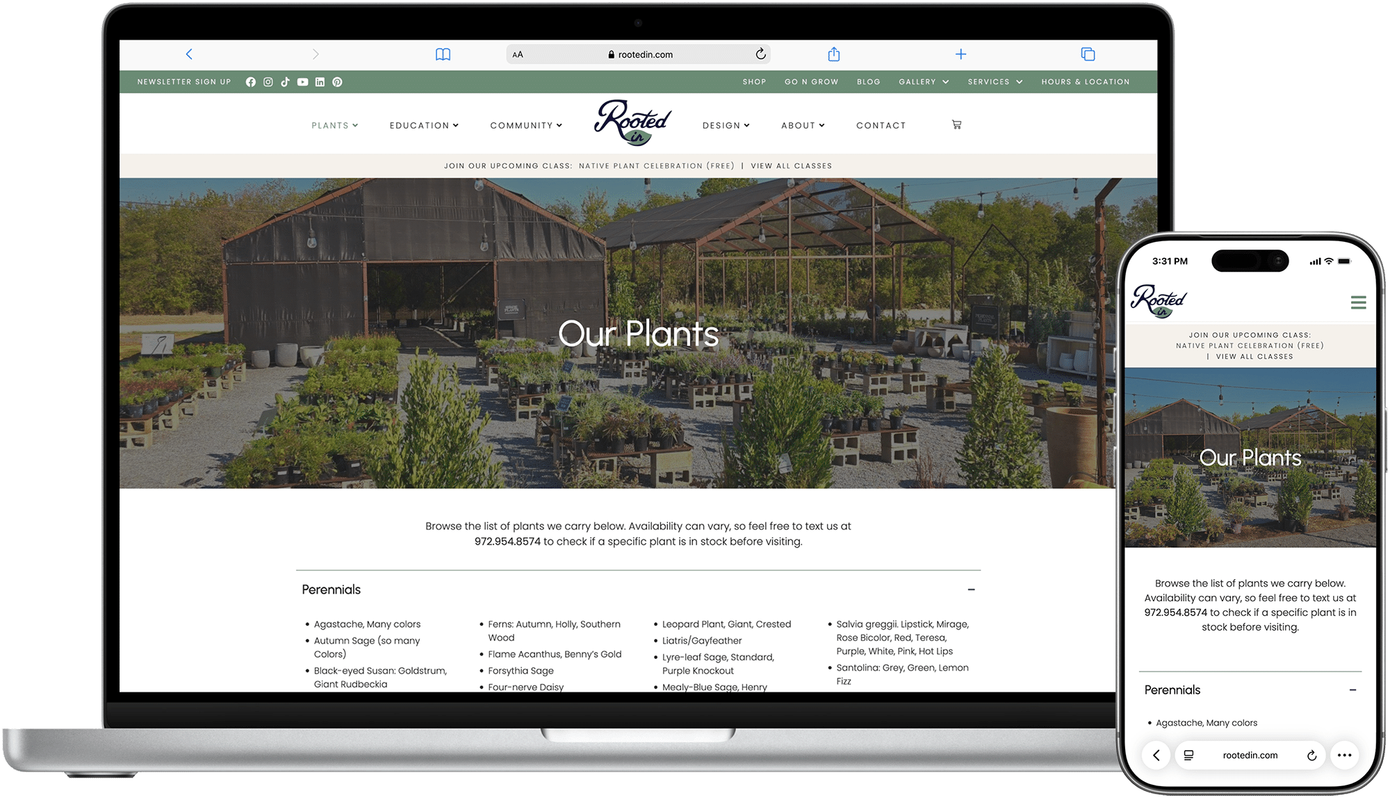 Website redesign for a local nursery focused on improved navigation, intuitive information architecture, and user-friendly experience to help customers find what they need quickly.