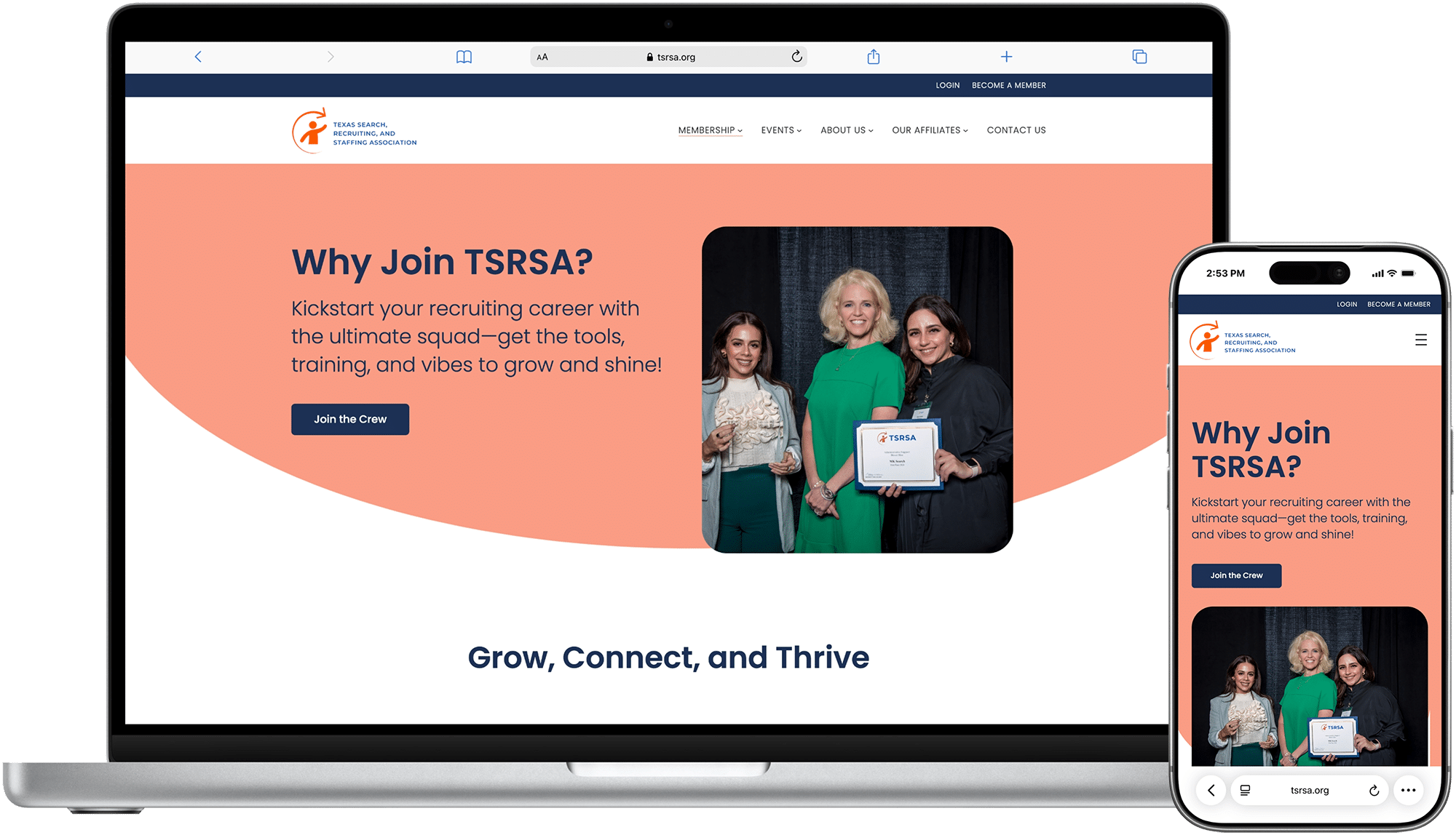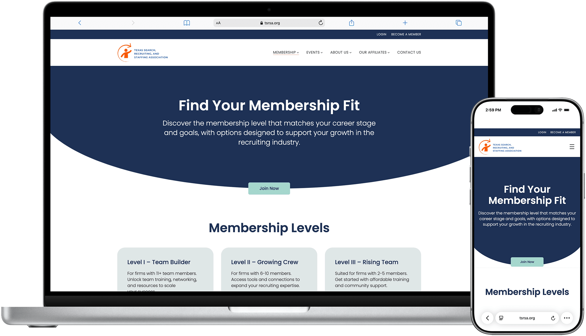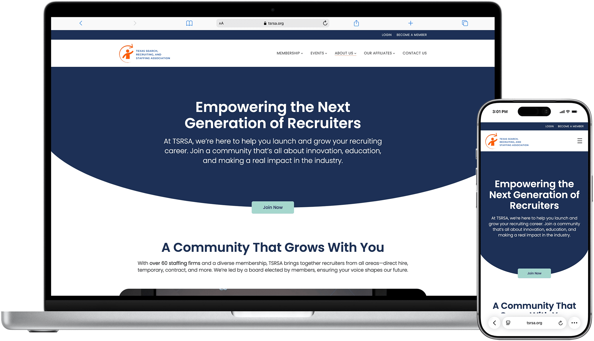 Website design and ongoing digital support for a staffing and recruitment firm, including social media management, SEO optimization, and strategic marketing assistance.